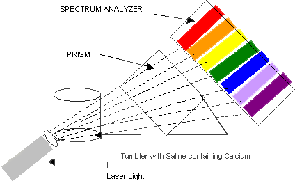 Nearly 20 years ago, a spectrum analysis process was developed to determine the relative frequency of the major elements that compose the physical body. A single element, say Calcium, was suspended in a saline solution (much as it would exist in the human body). A laser light was shown through the tumbler, projected through a prism and the spectrum analyzer was used to identify relative light frequencies. In turn, these have been mathematically transposed in hertz or cycles per second.